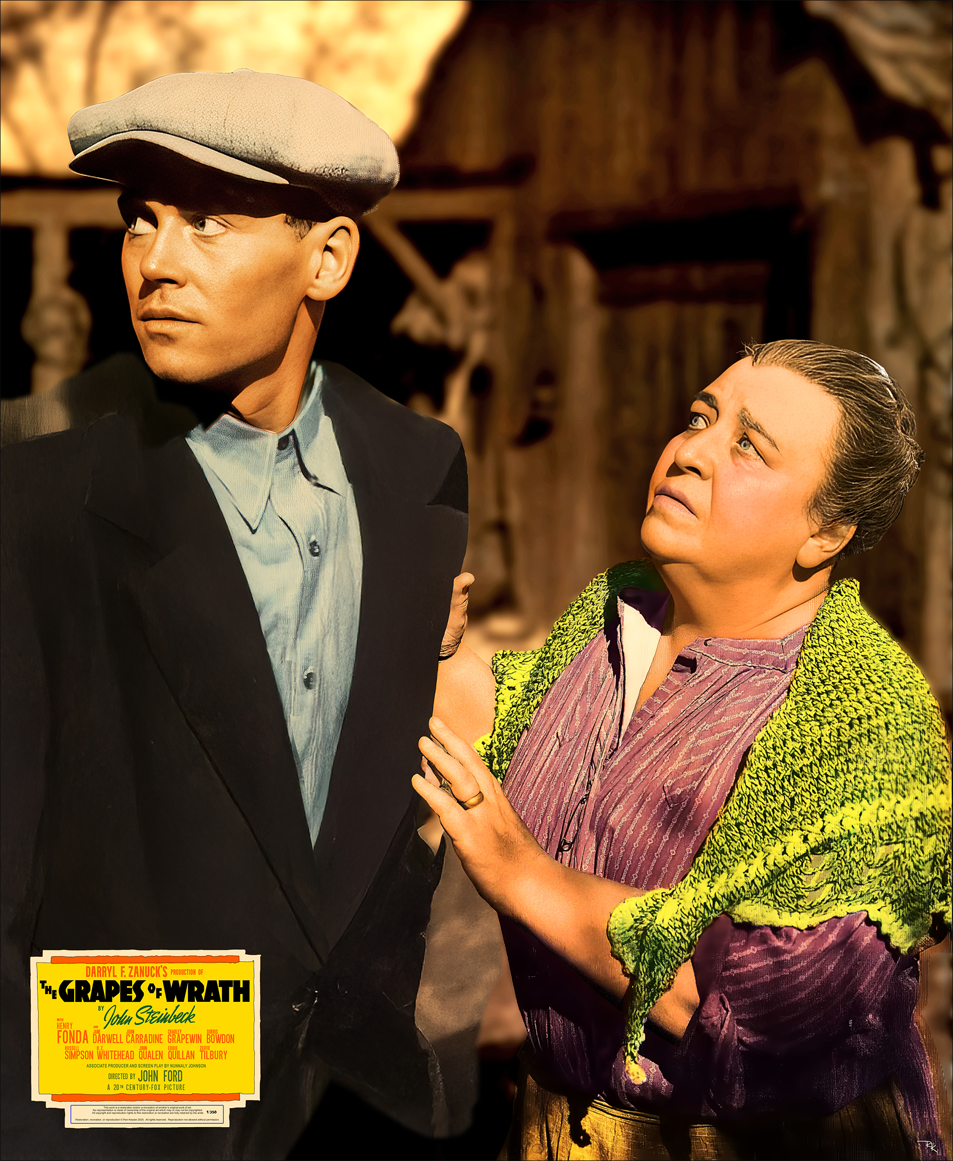 Claim Your Piece of Cinematic Heritage:  Celebrate the timeless legacy of “The Grapes of Wrath.” Add this beautifully restored jumbo lobby card to your collection today—an homage to endurance, beauty, and the American spirit.